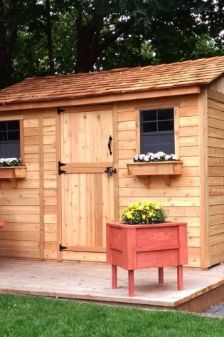 Cabin 9′ wide x 6′ deep wooden storage shed