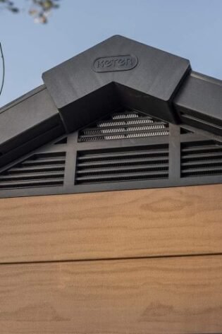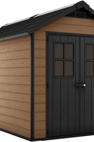 Keter Newton 7.5×11 Large Resin Outdoor Storage Shed Kit ?C Perfect to Store Patio Furniture, Garden Tools, Bike Accessories, and Lawn Mower, Mahogany Brown