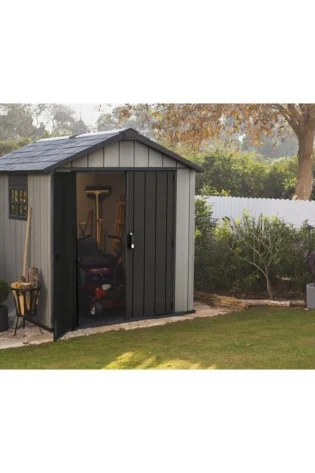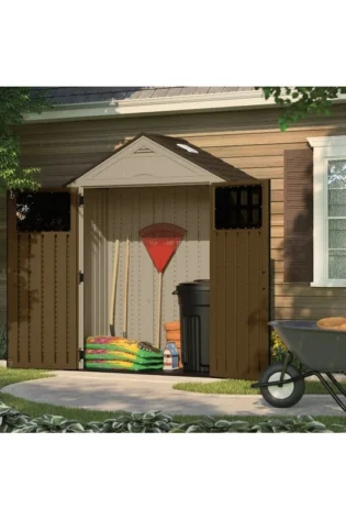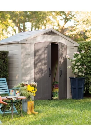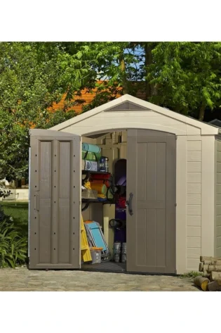 Factor 8 ft wide x 6 ft deep plastic storage shed