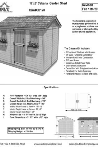 Cabana 12 ft. W x 8 ft. D Wood Storage Shed