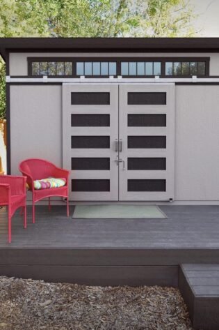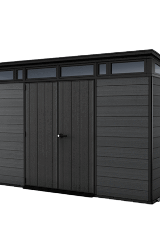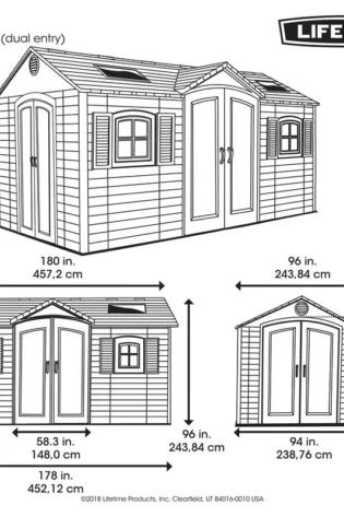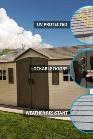 Double entry 15′ wide x 8′ deep plastic storage shed
