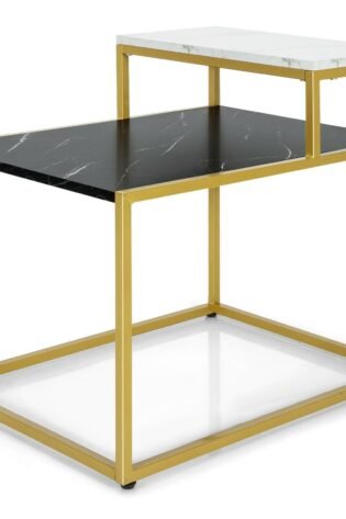 2 Tier End Side Table with Metal Frame and Storage Shelf for Living Room-White