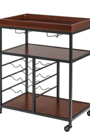 3 Tier Storage Bar Serving Cart with Wine Rack