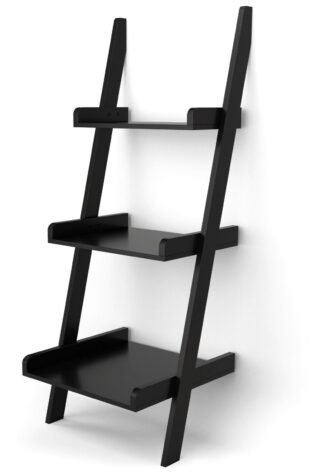 3 Tier Leaning Rack Wall Book Shelf Ladder-Black