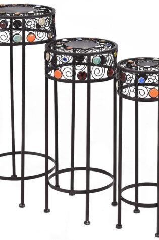 3 Pieces Metal Plant Stand Set with Crystal Floral Accents Round-Black