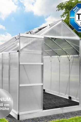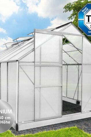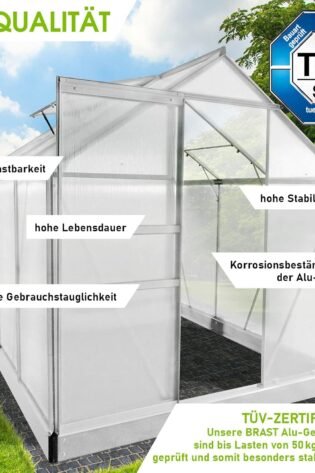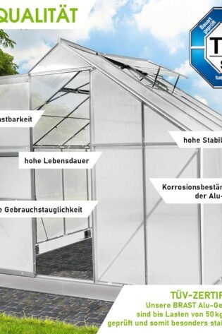 BRAST Greenhouse Aluminium with Base 310 x 190 x 195 cm TV Tested, 6 mm Hollow Chamber Panels, Rustproof, Weatherproof, Temperature-Resistant