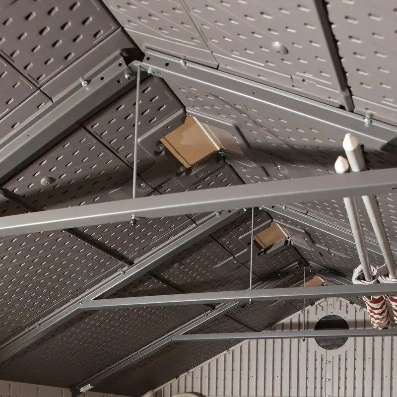 Lifetime’s outdoor sheds combine quality materials with innovative designs to provide convenient storage solutions that maximize storage potential.Combining excellent value with the ability to withstand Mother Nature’s daily abuse.Double-walled steel construction and steel roof trusses make the shed structurally strong so it won’t buckle in storms and won’t dent during everyday use.