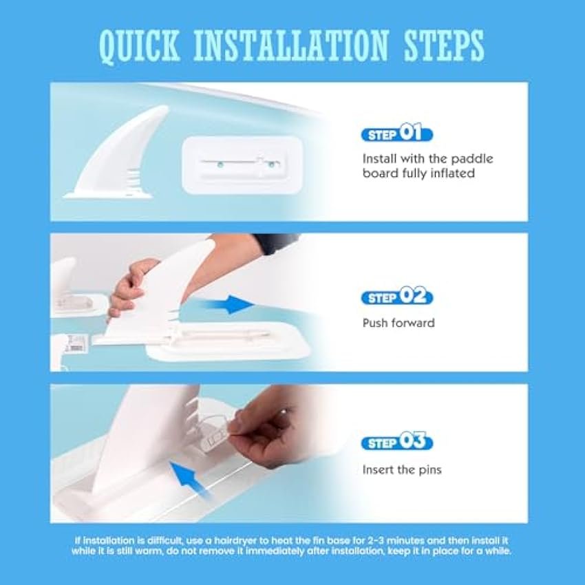 - ??Powerful Features??The multi-functional camera mount allows you to take your camera out on the water and capture the moments of surfing. paddling or other water activities. We use the new upgraded fins. The fins can be installed in seconds and paddle effortlessly into the fin base. making it easier for you to install and quicker to remove
