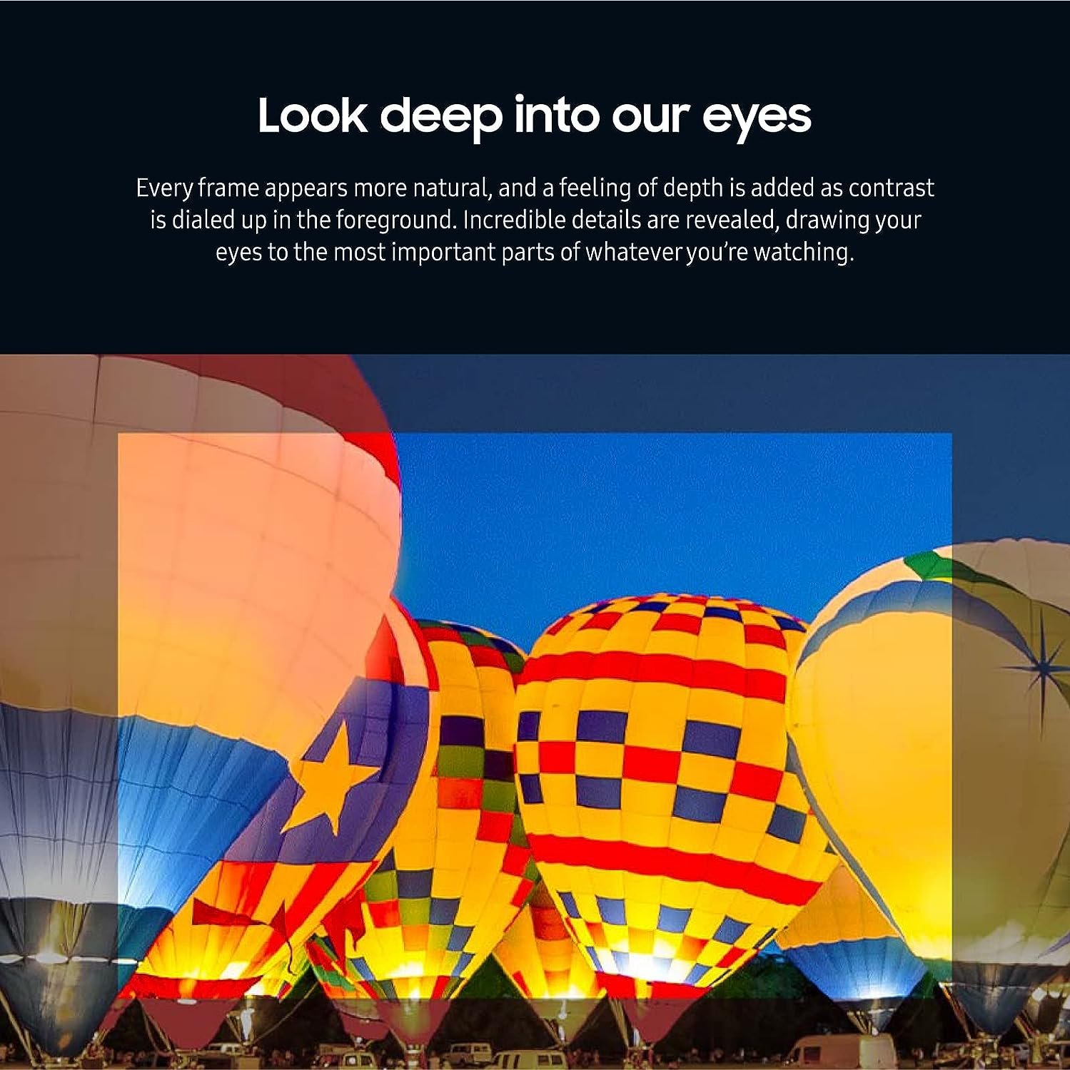 • MEGA CONTRAST: See more detail as our Mega Contrast analyzes and adjusts each image; Every frame appears more natural. and a feeling of depth is added as contrast is dialed up in the foreground
