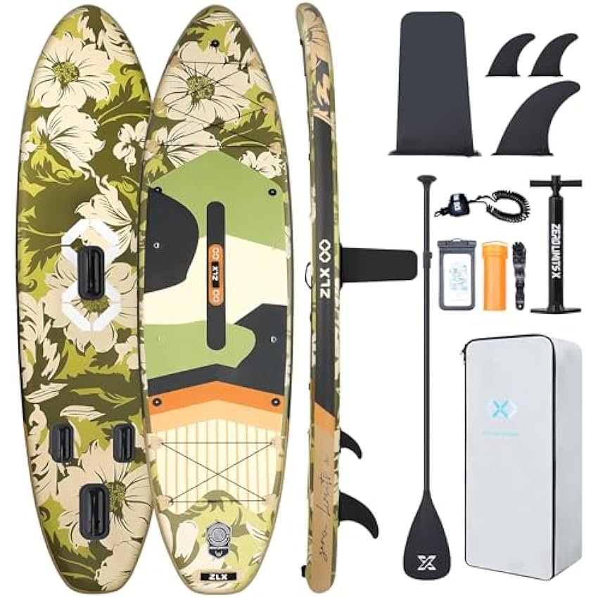 ZLX 11’6" Extra Wide Inflatable Stand Up Paddle Board SUP, Stable Non-Slip Deck Pad, Unique Fin System and Premium iSUP Accessories – Portable Backpack & Upgraded Pump for Adults, All Skill Levels