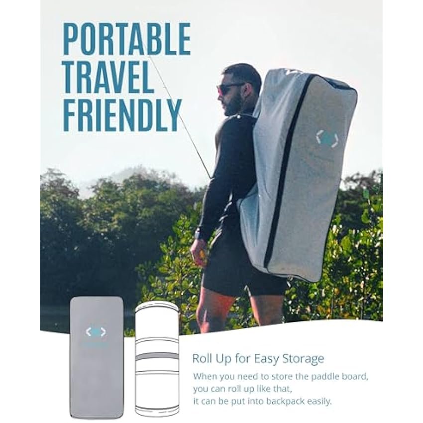 - ??ULTIMATE PORTABILITY??: This blow-up paddle board rolls into a lightweight backpack (included) for hands-free hiking to remote lakes and coastal beaches ?C 30% more compact than wooden boards. Fits effortlessly in car trunks or apartment closets. with rapid inflation (Upgraded pump included) ready for lake adventures and beach days in under 8 minutes