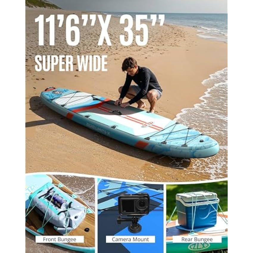 ZLX 11’6" Extra Wide Inflatable Stand Up Paddle Board SUP, Stable Non-Slip Deck Pad, Unique Fin System and Premium iSUP Accessories – Portable Backpack & Upgraded Pump for Adults, All Skill Levels